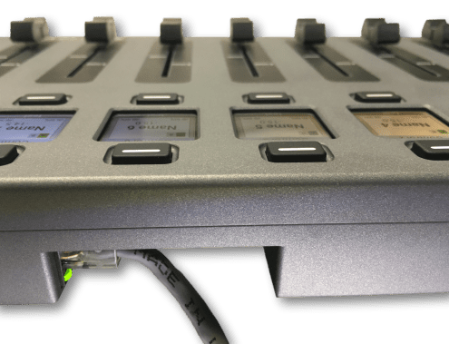 • Fader channel buttons are programmable to controls in your DSP