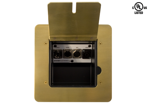 Insert panel, duplex power option and rough-in box ordered separately. Attractive solid brass 11 gauge cover, hand polished to a satin finishAccepts all ModuLine Insert Panels (up to 4 XLR type connectors, active devices or duplex power)