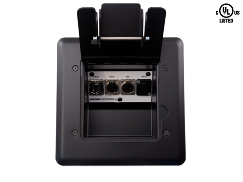 Insert panel, duplex power option and rough-in box ordered separately. Attractive satin black 12 gauge scratch resistant cover with powder coated finishAccepts all ModuLine Insert Panels (up to 4 XLR type connectors, active devices or duplex power)