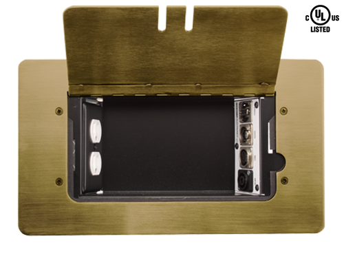 Insert panels, duplex power option and rough-in box ordered separately. Attractive solid brass 11 gauge cover, hand polished to a satin finishAccepts all ModuLine Insert Panels (up to 8 XLR type connectors, active devices or duplex power)