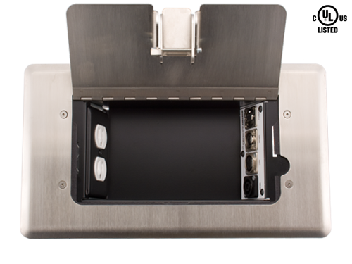 Unique design and 12 gauge cover supports loads in excess of the 300lb UL standard. Ideal for classrooms, houses of worship, conference rooms, courtrooms, performance venues or anywhere connections are needed in the floor. The attractive design and finish allows for the FMCA2800 to also be used for in-wall applications.