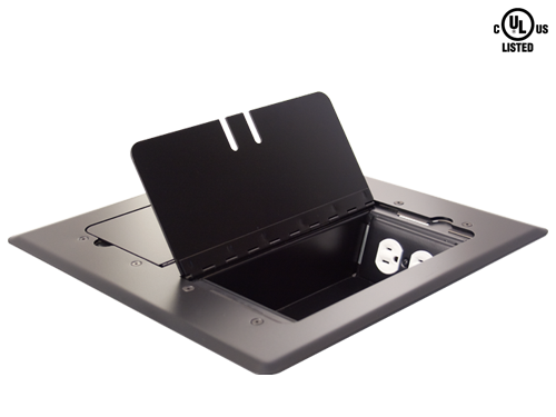 Unique design and 12 gauge cover supports loads in excess of the 300lb UL standard. Ideal for classrooms, houses of worship, conference rooms, courtrooms, performance venues or anywhere connections are needed in the floor. The attractive design and finish allows for the FMCA3000 to also be used for in-wall applications.