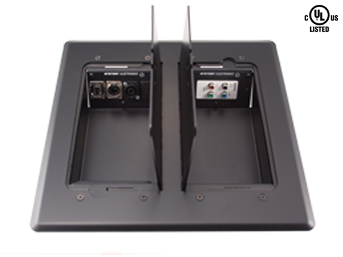 Insert panels, duplex power option and rough-in box ordered separately. Attractive satin black 12 gauge scratch resistant cover with powder coated finishAccepts all ModuLine Insert Panels (up to 16 XLR type connectors, active devices or duplex power)